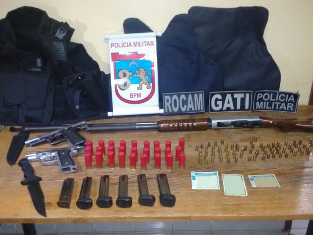 De acordo com a Polícia Militar, abordaram um veículo suspeito e identificaram os homens. Com os suspeitos foram encontradas com uma pistola calibre .380, uma pistola calibre 9mm, uma escopeta de repetição calibre 12mm, as duas últimas armas estavam carregadas. Além disso, também foram apreendidos um carregador de pistola calibre .40, 27 munições de calibre 12mm, 27 munições de calibre 9mm e 65 munições de calibre .380. Parte do armamento é de uso restrito.