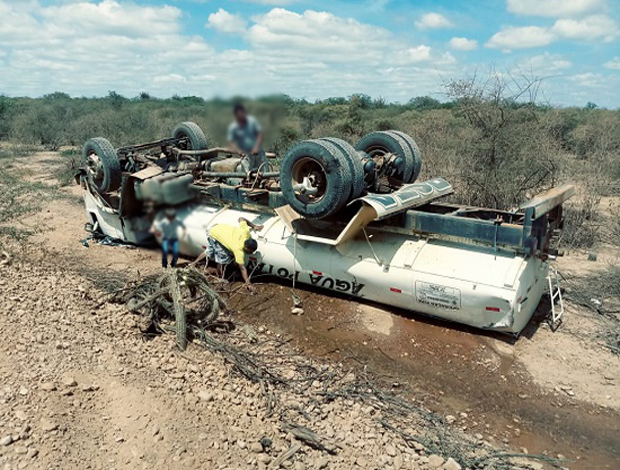 Um caminhão-pipa tombou na tarde desta quinta-feira, (17), na estrada do rio próximo ao assentamento São Francisco