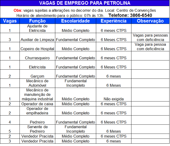 Confira as vagas de emprego disponíveis nesta sexta em Petrolina (PE)