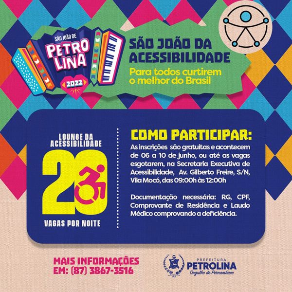 Para garantir uma vaga é necessário apresentar: xerox do RG e CPF, comprovante de residência e laudo médico comprovando a deficiência. Outras informações podem ser obtidas pelo telefone (87) 3867-3516.